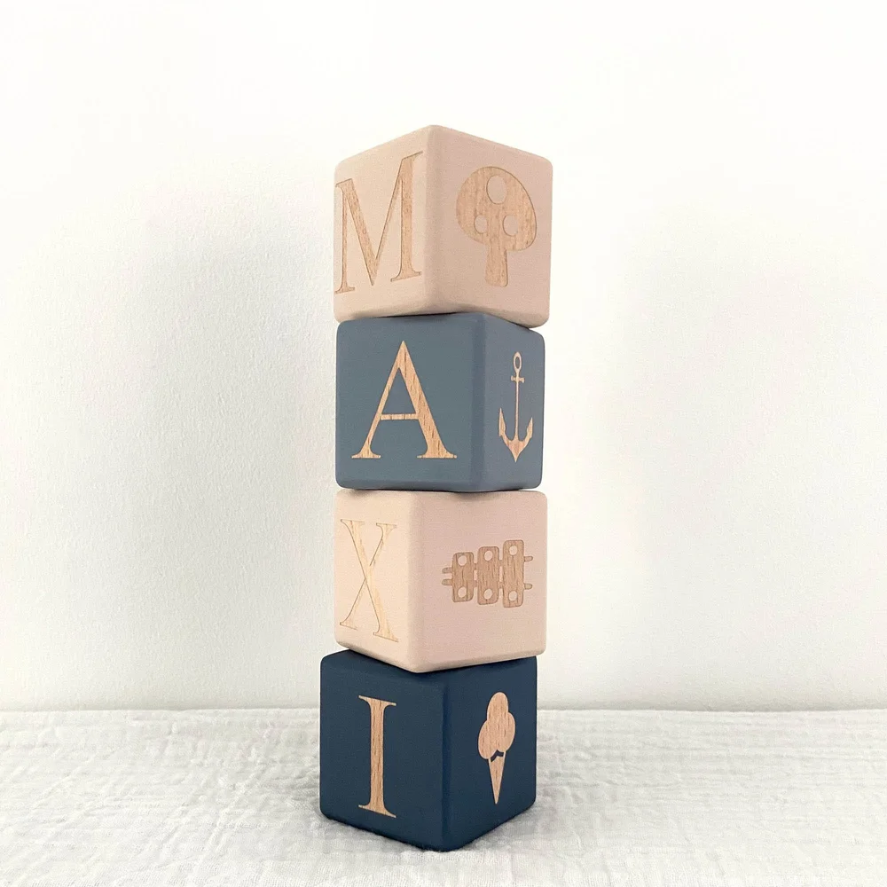 Handpainted Wooden Baby Name Blocks With Letters And Pictures Little Berry Button