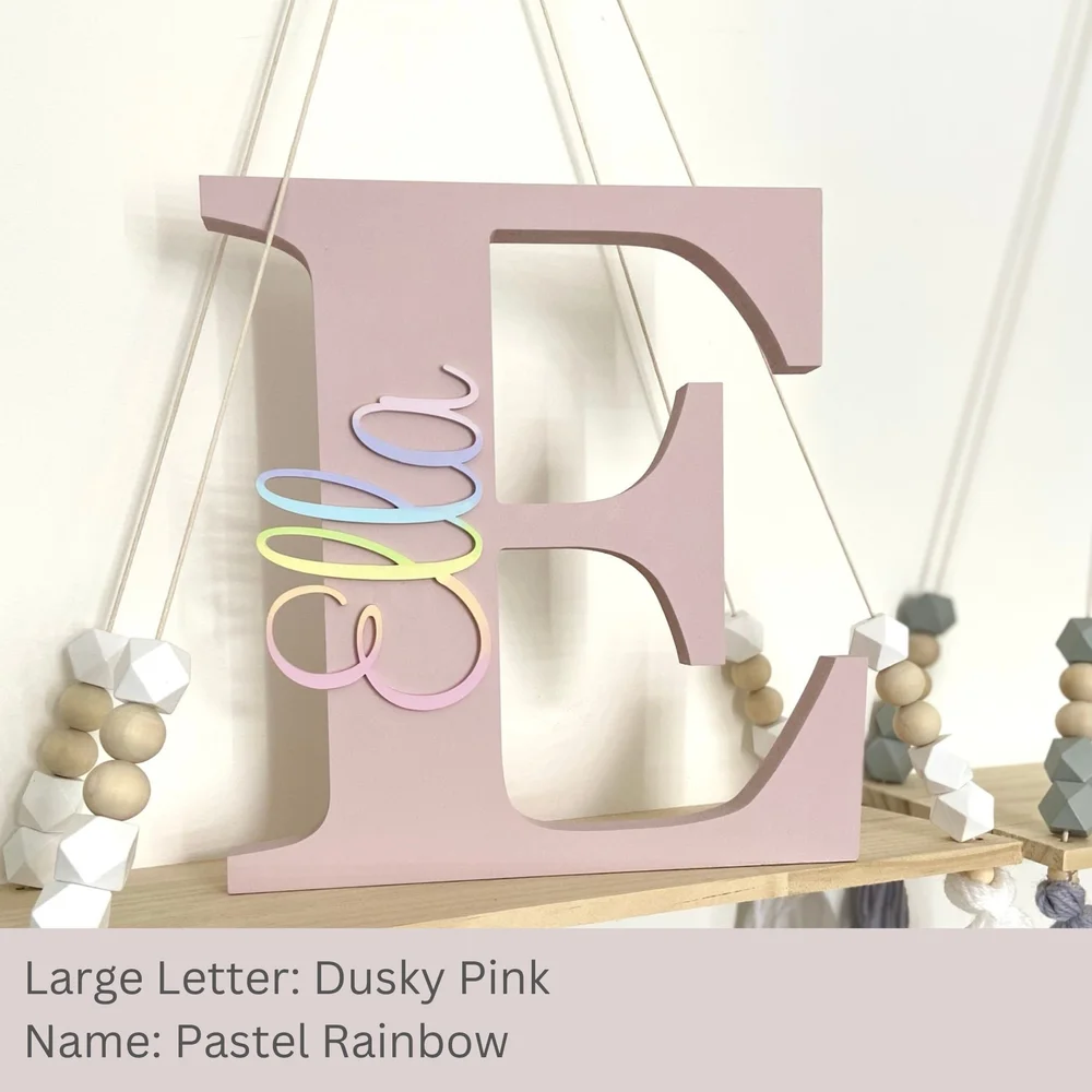 Large Letter Personalised Freestanding Wooden Letter Initial With Scripted Name In Pastel Rainbow Atwick Creations New Launch Nursery Decor